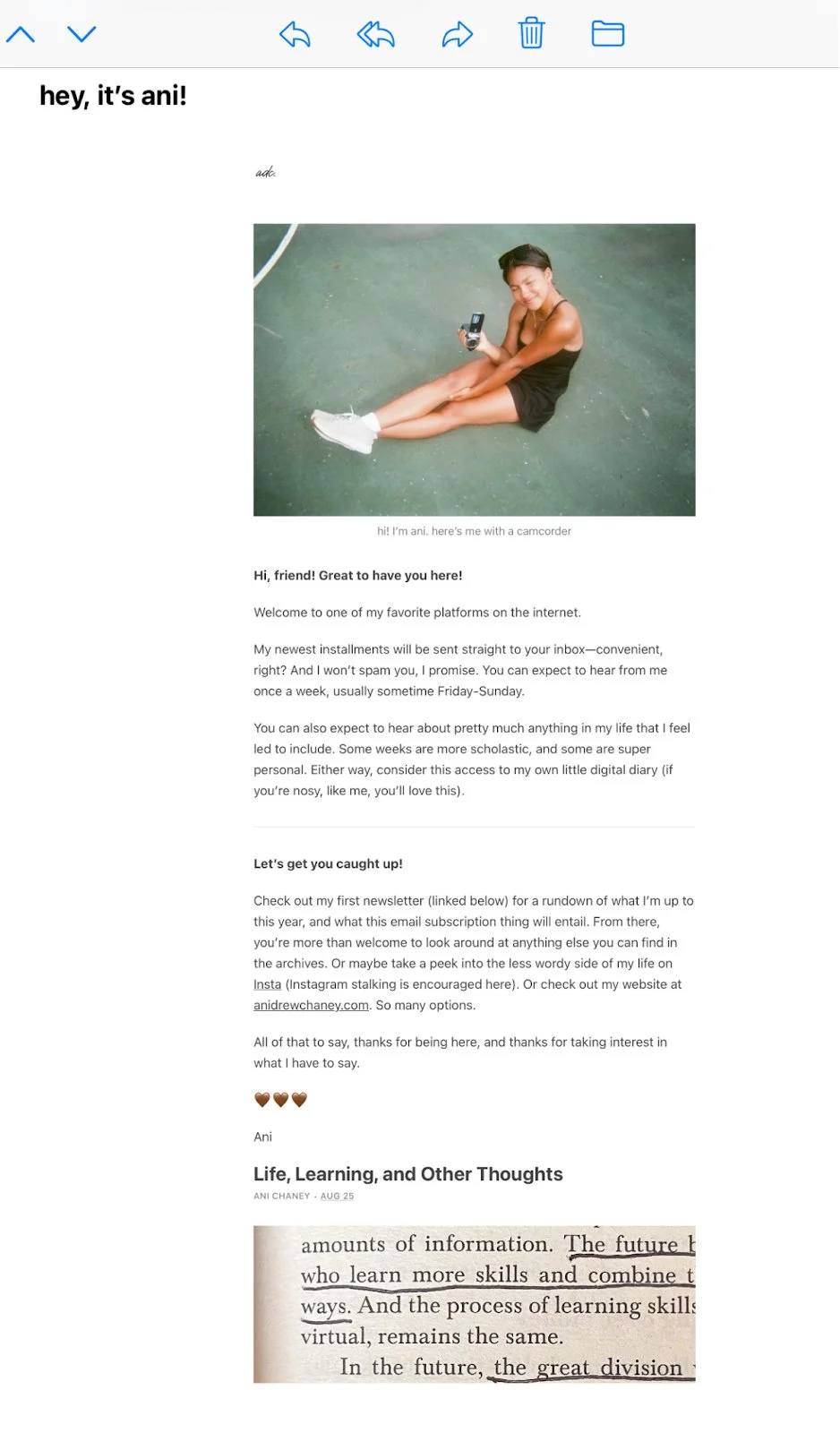 I was also prompted to analyze welcome emails from newsletters I am subscribed to, and then use some of those elements to rewrite my welcome email copy for my own newsletter! I had created a pretty basic one back when I started the newsletter, but it’s nice to have a refresh; something a little more substantial and informative.